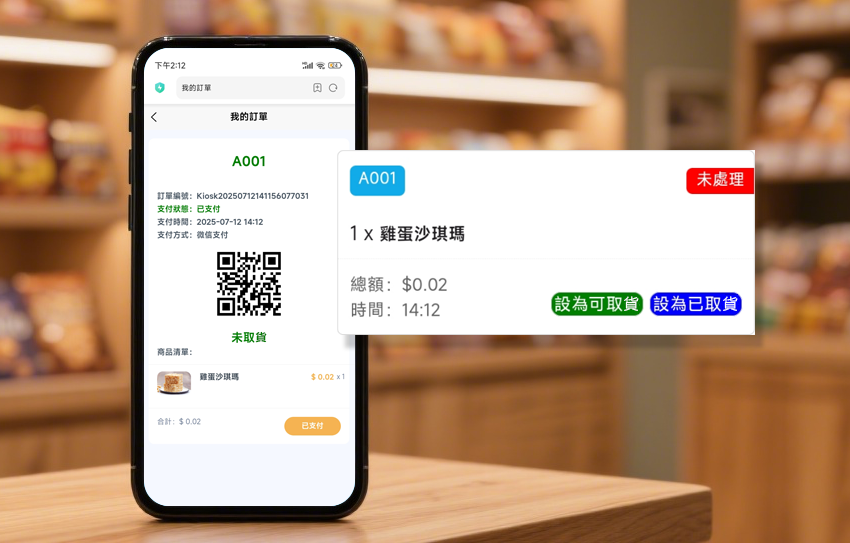 取货显示系统:实时显示 「订单号」、「准备中」、「请取货」,减少混乱