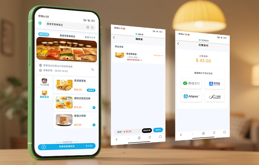 聚合支付:支援八达通、Alipay、WeChat Pay、信用卡